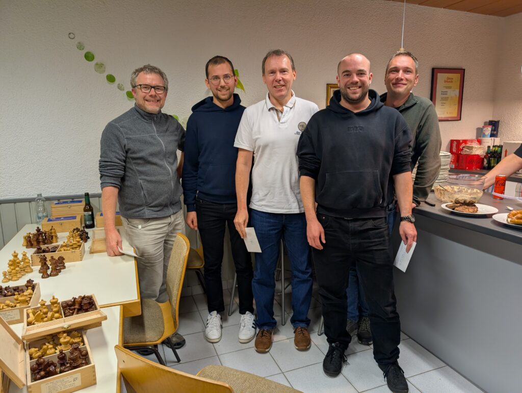 Das diesjährige Event lockte trotz verlängertem Wochenende einige Stammgäste unserer Blitz & Grill Serie an. Dazu gesellten sich auch neue Gesichter, allein dafür lohnt sich schon die Ausrichtung für unseren Verein enorm. Leider konnte das Wetter in diesem Jahr nicht mit den letzten Jahren mithalten, doch fanden alle Teilnehmer ausreichend Platz in unserem Clubraum. Der erste Platz des Blitzturniers ging wieder an den Turnierfavoriten Andreas K. mit 12 aus 13 Punkten.